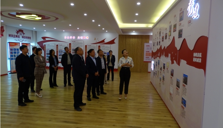 調(diào)研組一行先到集團貴賓接待室座談,隨后參觀了集團企業(yè)文化展廳,了解企業(yè)發(fā)展現(xiàn)狀、黨建工作基本情況等。